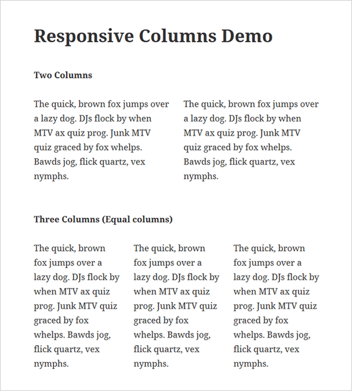 WEN Responsive Columns provides you with a shortcode that will help display columnized content. Just one shortcode [ wrc_column ] is in effect for convenience but the sole is enough for generating multiple mixes of columns. Grids could be 2, 3, 4, 5 or 12 and you can easily add columns using button in the editor. Select your desired layout and use shortcode. That’s it !