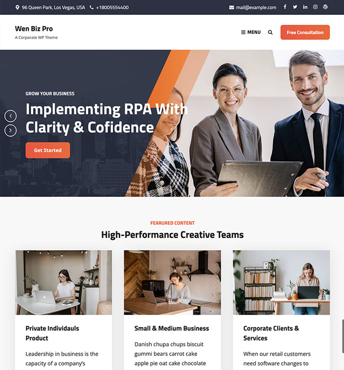 WEN Biz Pro is a Premium Multipurpose Corporate WordPress theme that comes with a responsive Corporate design and extensive functionalities. The theme is suitable for all kinds of business websites and multipurpose blogs. It is absolutely clean, minimal, and visually aesthetic to perfectly fit all kinds of professional corporate websites. The responsive design in WEN Biz Pro makes your corporate site look stunning across all screen sizes. Sections like Header Media, Contact Form, Featured Content, Featured Slider, Fitvid Options, Font Family Options, Gallery, Header Top Options, Hero Content, Logo Slider, Portfolio, Promotion Content, Promotion Headline, Promotion Video, Sections Sorter, Services, Stats, Testimonials, WooCommerce Ready, and more. All of the sections are highly customizable and fully responsive. You can build a unique business site with these sections. The Scroll up Option in this theme adds a default button on the bottom right to scroll to the top. This business WordPress theme gives you the ability to create robust, resourceful, and modern websites across any number of possible fields, industries, and businesses. Moreover, WEN Biz Pro is translation-ready, and reaching your global audience is utterly easy. Official Support Forum: https://themepalace.com/support-forum/ Full Demo: https://wenthemes.com/theme-demos/?demo=wen-biz-pro