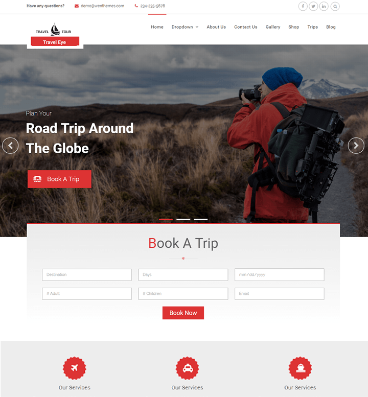 Travel Eye is a clean and professional Travel WordPress Theme. This Theme is ideal for travel agencies, hotels, tour operators or any other organization related to travel and tours. It is powered by Page Builder by Site Origin, so drag-and-drop feature will be very handy to customize the page layout as you want. It has Theme Options panel based on powerful Customizer API which makes theme pretty easy to customize and configure. Prebuilt layout is available for home page so you can get your page layout in one click.