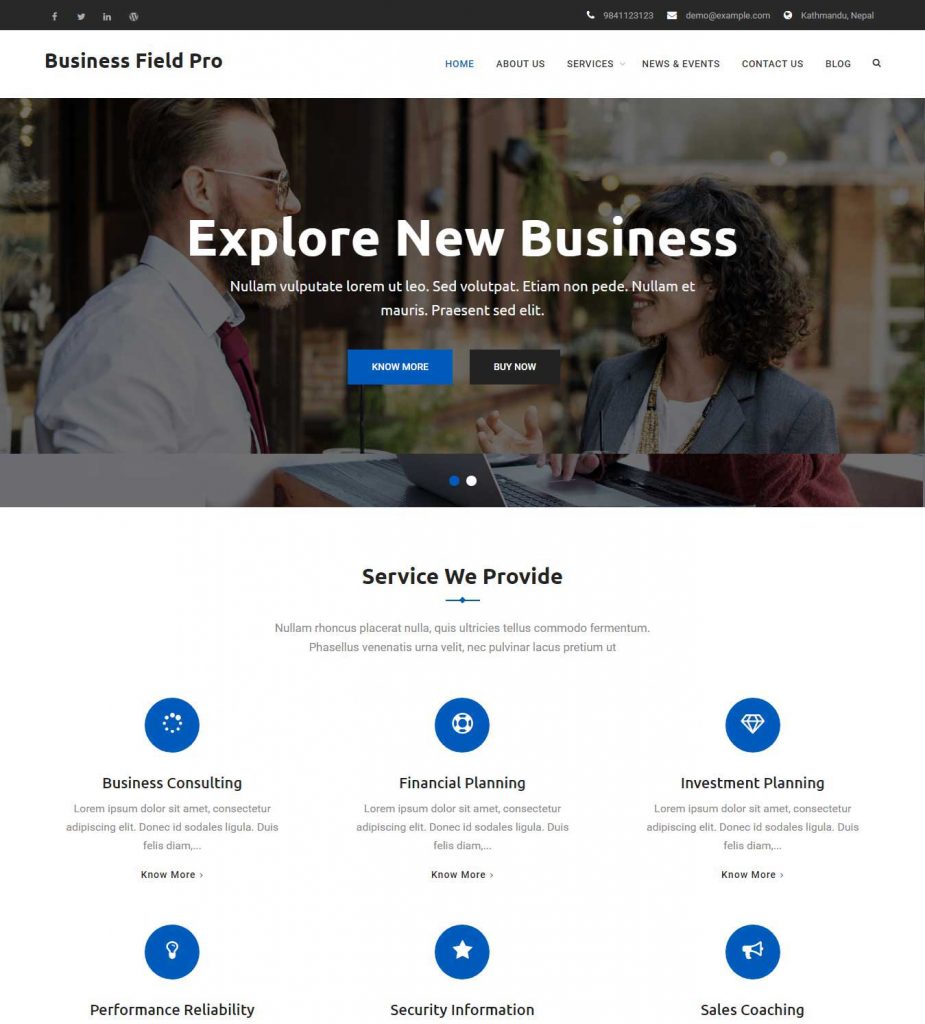Business Field Pro is a responsive and clean business WordPress theme. It is versatile and high performance theme with a modern creative design to suit a multitude of creative uses for building websites. It is ideal for businesses, agencies, corporations, and freelancers, who are looking to grow their business. The main concept behind this theme is a user friendly environment that allows users to enjoy the clean and impressive design. It has unique structure and simplified option panels, so that you will be able to easily build a stunning website for your business. Official Support Forum: http://themepalace.com/support-forum/ Full Demo: http://wenthemes.com/theme-demos/?demo=business-field-pro