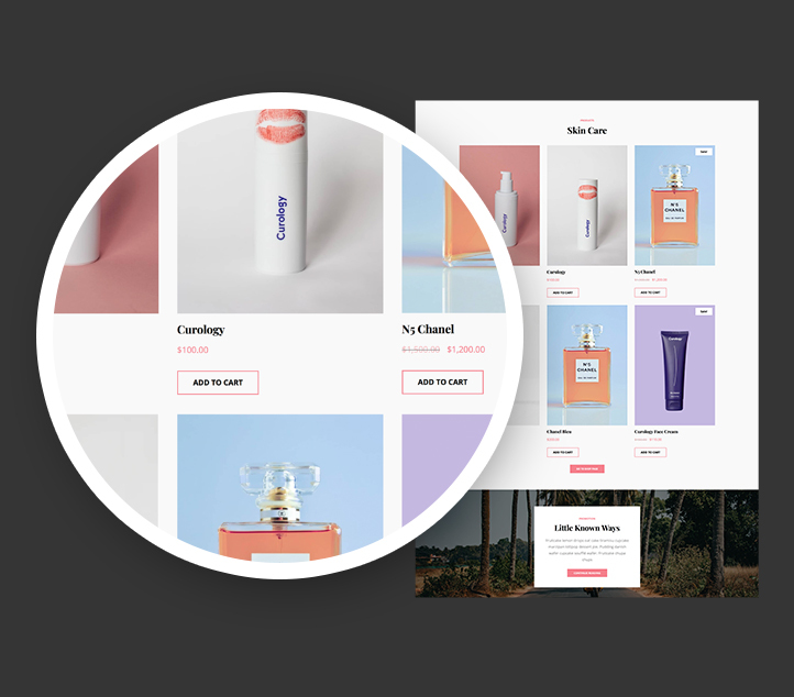 Another cool eCommerce feature added is the WooCommerce Products Showcase section. This section allows you to feature your most important products or the products you want your visitors to see at any cost. The section is somewhat similar to the Featured Products section that allows you to display your most amazing products.