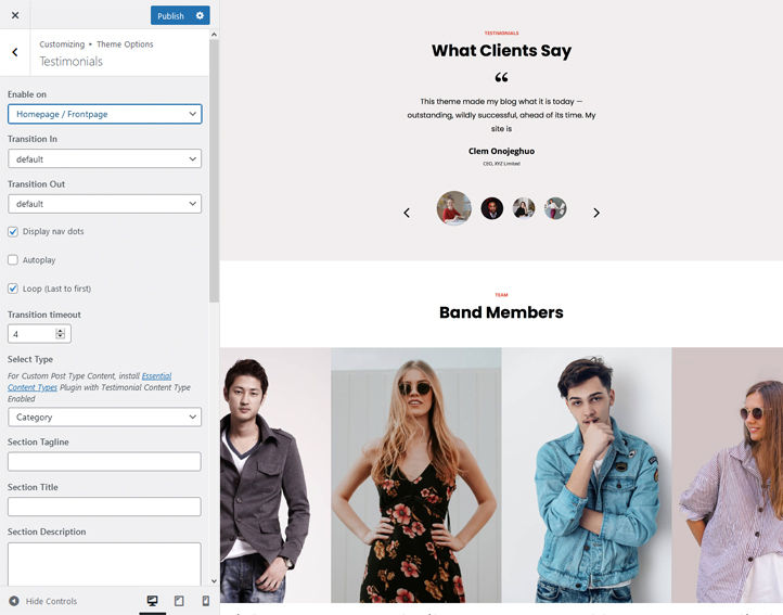 It includes many featured crucial sections and features. For instance, Site Design, Site layout, Manage section, Featured Slider, Featured Content, Testimonials, Team, Gallery, WooCommerce Support, and more. Moreover, it also comes with advanced color options. All of the sections are fully customizable and responsive.